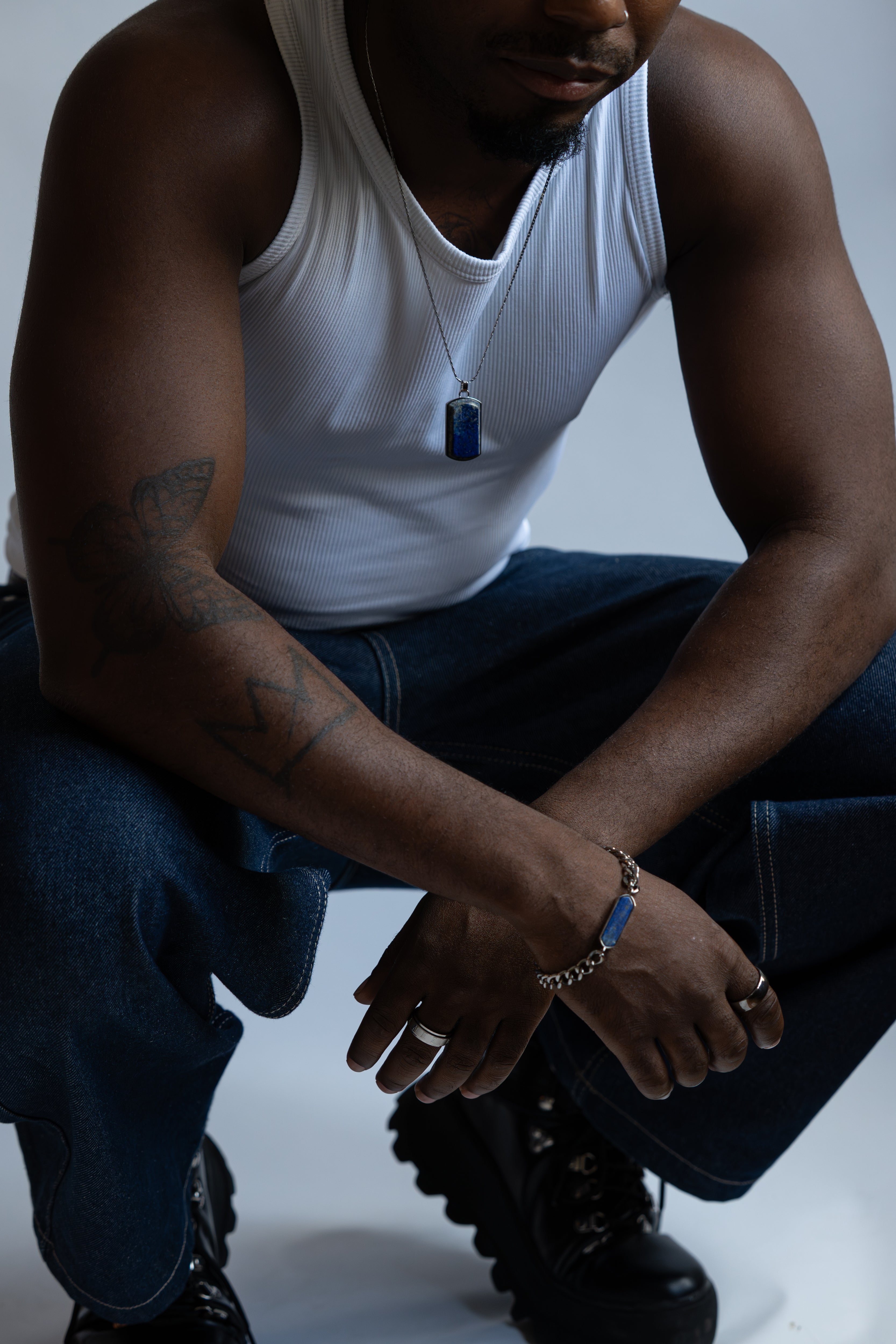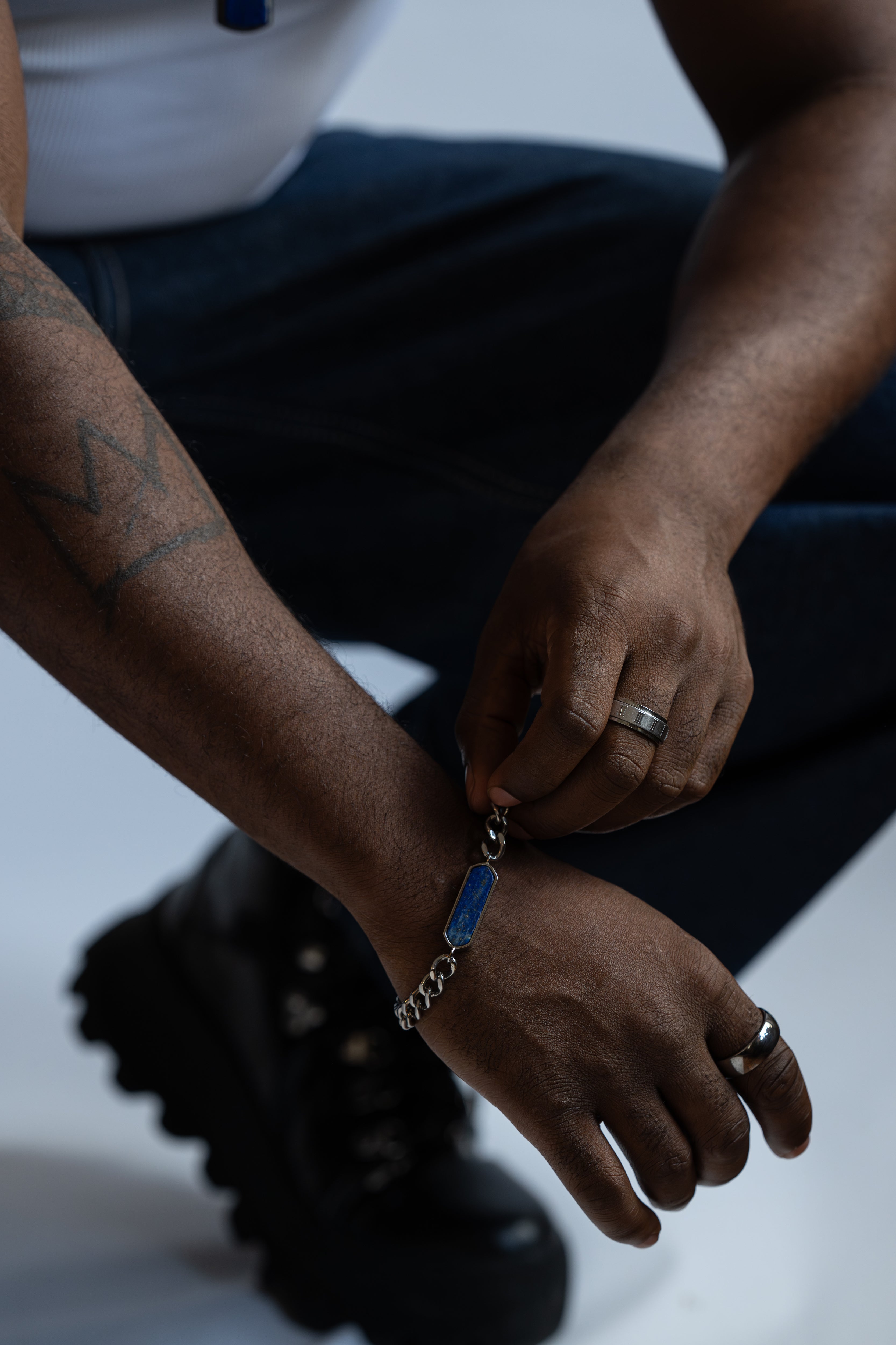 - Stainless steel with lapis gemstone