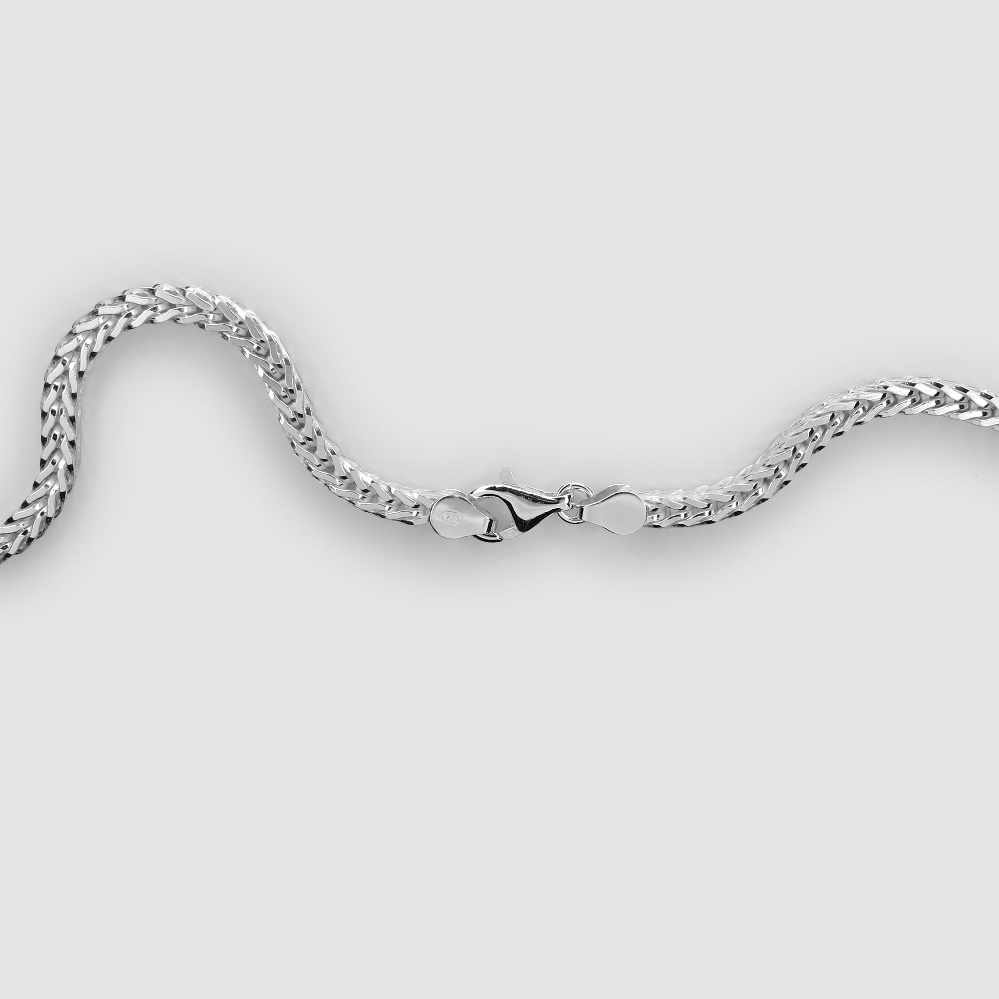 A timeless staple for any collection, this heavyweight foxtail chain is crafted from solid 925 sterling silver and finished with a smooth polished shine. Its dense, woven texture gives it a bold, premium feel while still sitting comfortably around the neck. Designed to elevate both everyday outfits and smarter looks, this chain stands strong on its own or can be layered with other pieces for added depth.